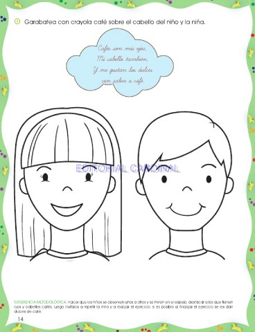 SUGERENCIA METODOLÓGICA: Hacer que los niños se observen unos a otros y se miren en el espejo, destacar a los que tienen