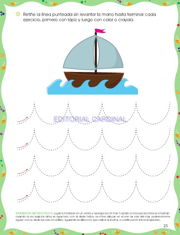 siguen con su dedo las olas en el libro, siguiendo la dirección que indica la flecha, a continuación inicia el ejercicio.