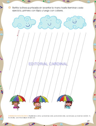 SUGERENCIA METODOLÓGICA: Repitiendo la rima: ya lloviendo está, ya lloviendo está, cae la lluvia, ya lloviendo está tin, tin,