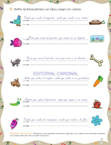 SUGERENCIA METODOLÓGICA: Mientras los niños aprenden las rimas van siguiendo con el dedo índice las líneas punteadas