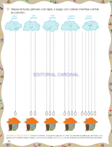 SUGERENCIA METODOLÓGICA: Cantar la canción “Una gotita cayó en mi casa” se extiende la palma de una mano y se