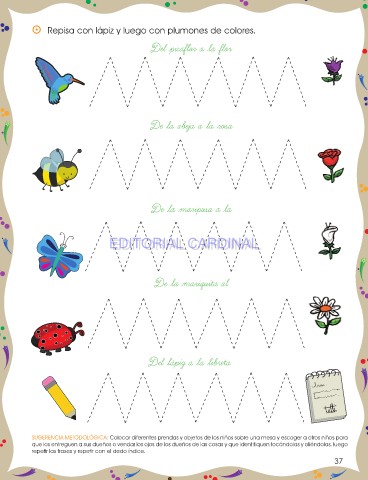 ⵙ Repisa con lápiz y luego con plumones de colores.