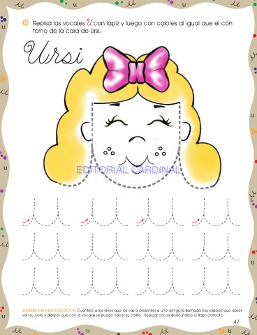 SUGERENCIA METODOLÓGICA: Cuéntele a los niños que les vas a presentar a una amiguita llamada Ursi, pídales que obser-