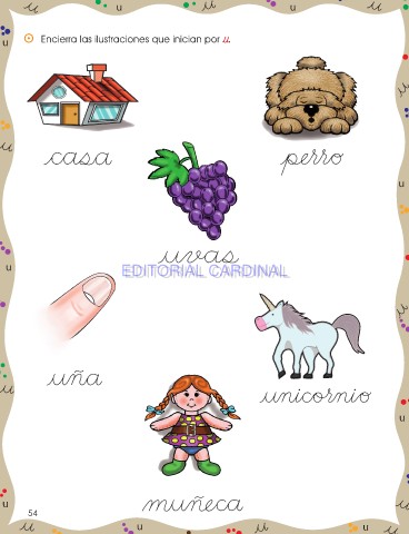 u u u ⵙ Encierra las ilustraciones que inician por u. u u EDITORIAL CARDINAL EDITORIAL CARDINAL u u 54 54 u u