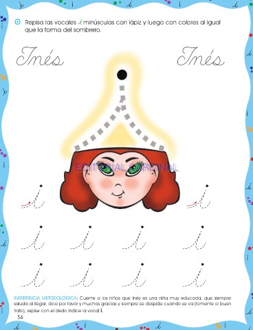 SUGERENCIA METODOLÓGICA: Cuente a los niños que Inés es una niña muy educada, que siempre