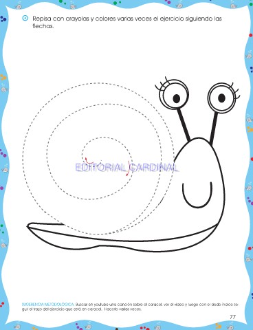 SUGERENCIA METODOLÓGICA: Buscar en youtube una canción sobre el caracol, ver el video y luego con el dedo índice se-