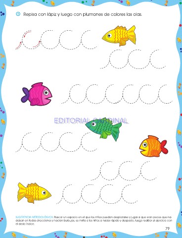 SUGERENCIA METODOLÓGICA: Buscar un espacio en el que los niños puedan desplazarse y jugar a que eran peces que na-