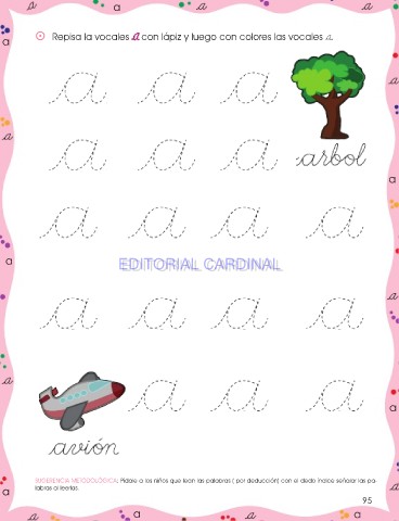 a ⵙ Repisa la vocales a con lápiz y luego con colores las vocales a.