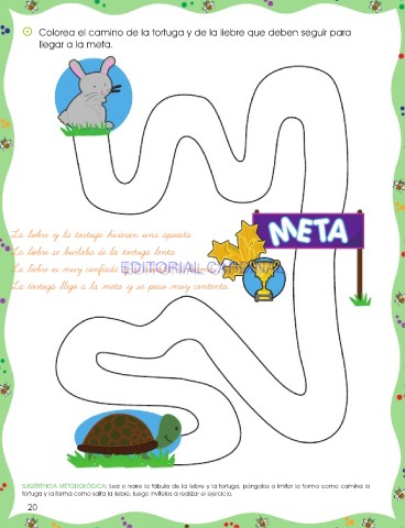SUGERENCIA METODOLÓGICA: Lea o narre la fábula de la liebre y la tortuga, póngalos a imitar la forma como camina la