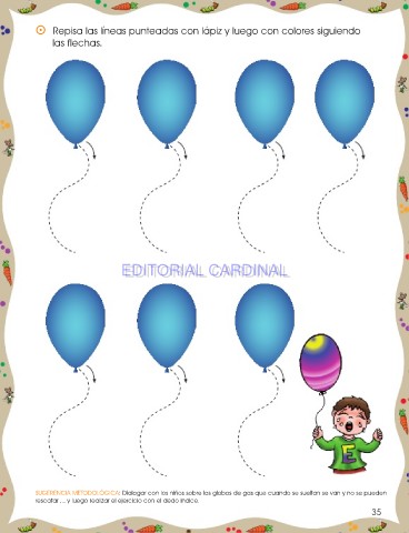 SUGERENCIA METODOLÓGICA: Dialogar con los niños sobre los globos de gas que cuando se sueltan se van y no se pueden