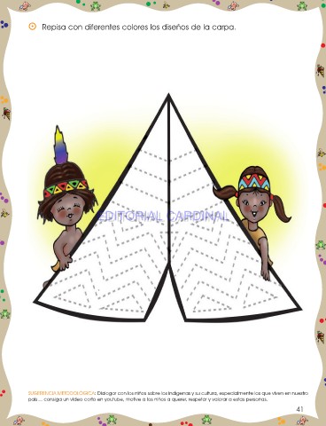 SUGERENCIA METODOLÓGICA: Dialogar con los niños sobre los indígenas y su cultura, especialmente los que viven en nuestro