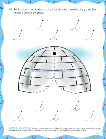 i dos iglús (buscar en google) luego dibujar en el tablero la vocal i minúscula y la forma de dibujar un iglú.