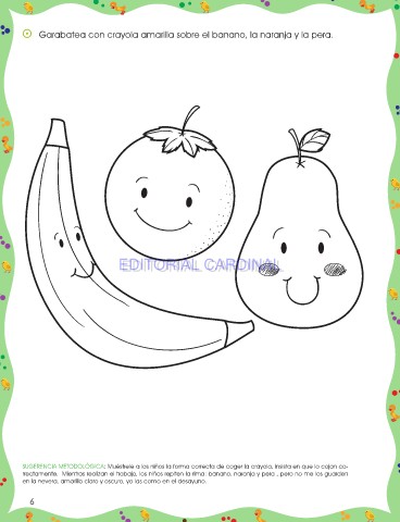 rrectamente. Mientras realizan el trabajo, los niños repiten la rima: banano, naranja y pera , pero no me los guarden