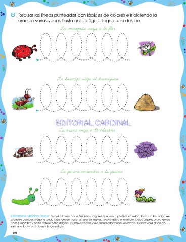 ⵙ Repisar las líneas punteadas con lápices de colores e ir diciendo la